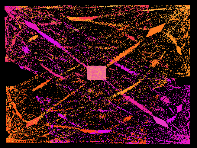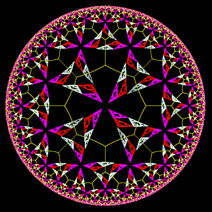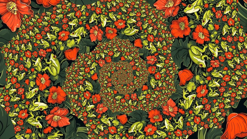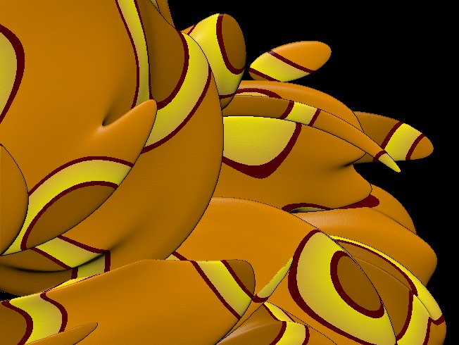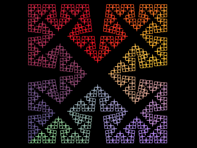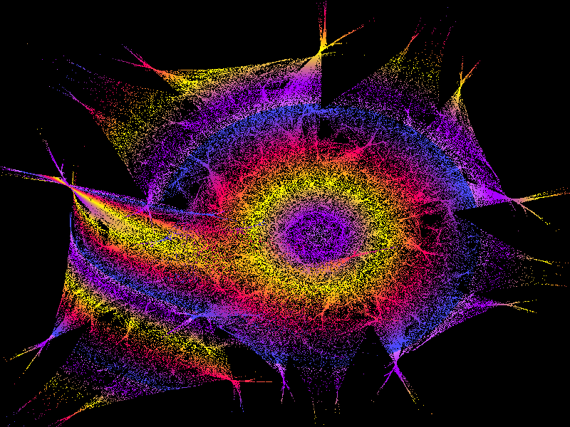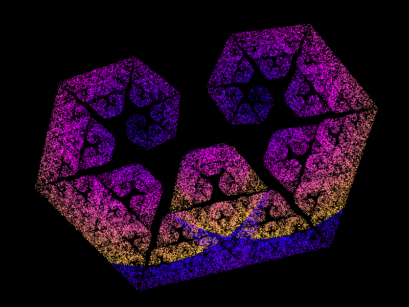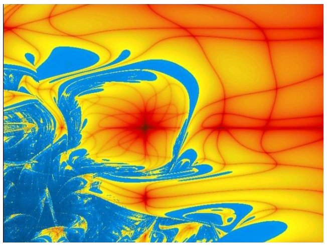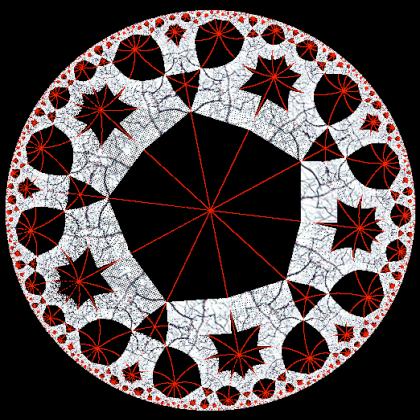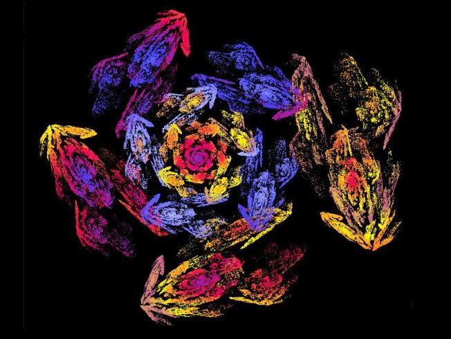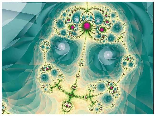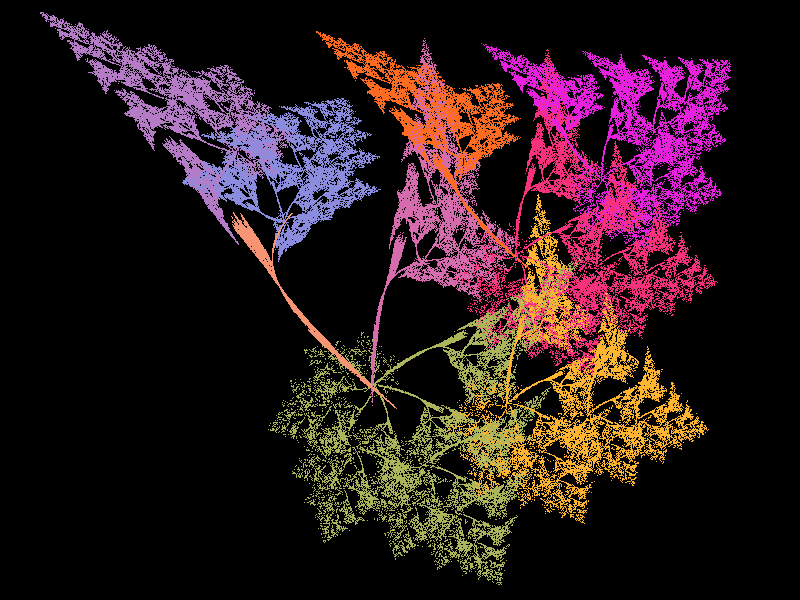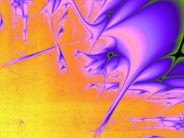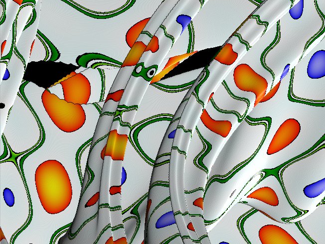 You are in my Fractal Gallery. Here I show the images I like and which I've produced with my own programs or with my camera. There is also a room with images from International Fractal Friends. Free walls in new rooms could be filled with your work. The images are of different fractal types, but you won't find much Mandelbrot-Set pics. I am impressed by the Mandelbrot-Set too, but many galleries are filled with it, so it isn't necessary for me to offer more of those. My favorite type is the IFS-type but I also build Liapunov and Lindenmayer images. Don't miss the Droste Effect. I hope you'll enjoy my images on math and art.