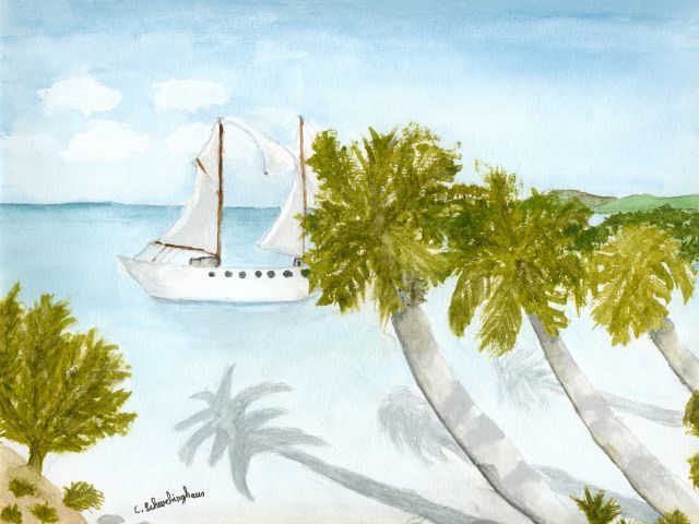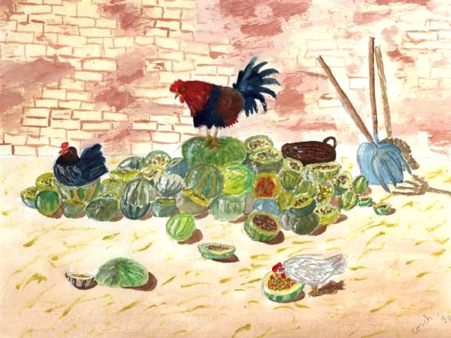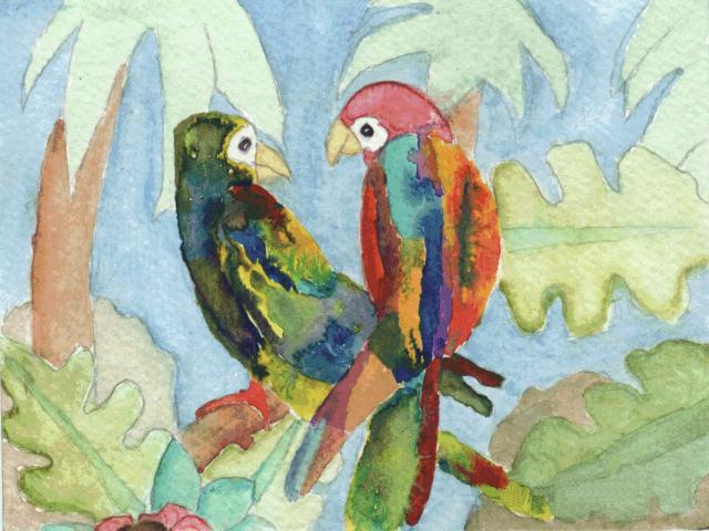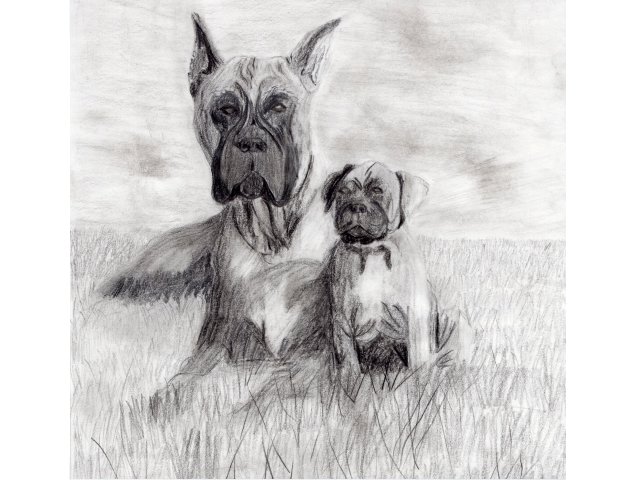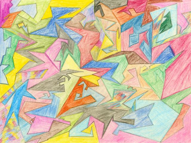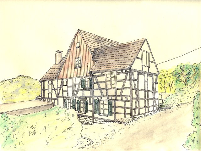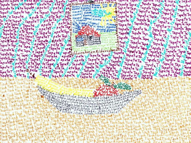 Bilder und Grafiken in unterschiedlichen Techniken: Bleistift- und Buntstiftzeichnungen, Aquarelle und mehr. Die Übersicht zeigt mehrere Räume.